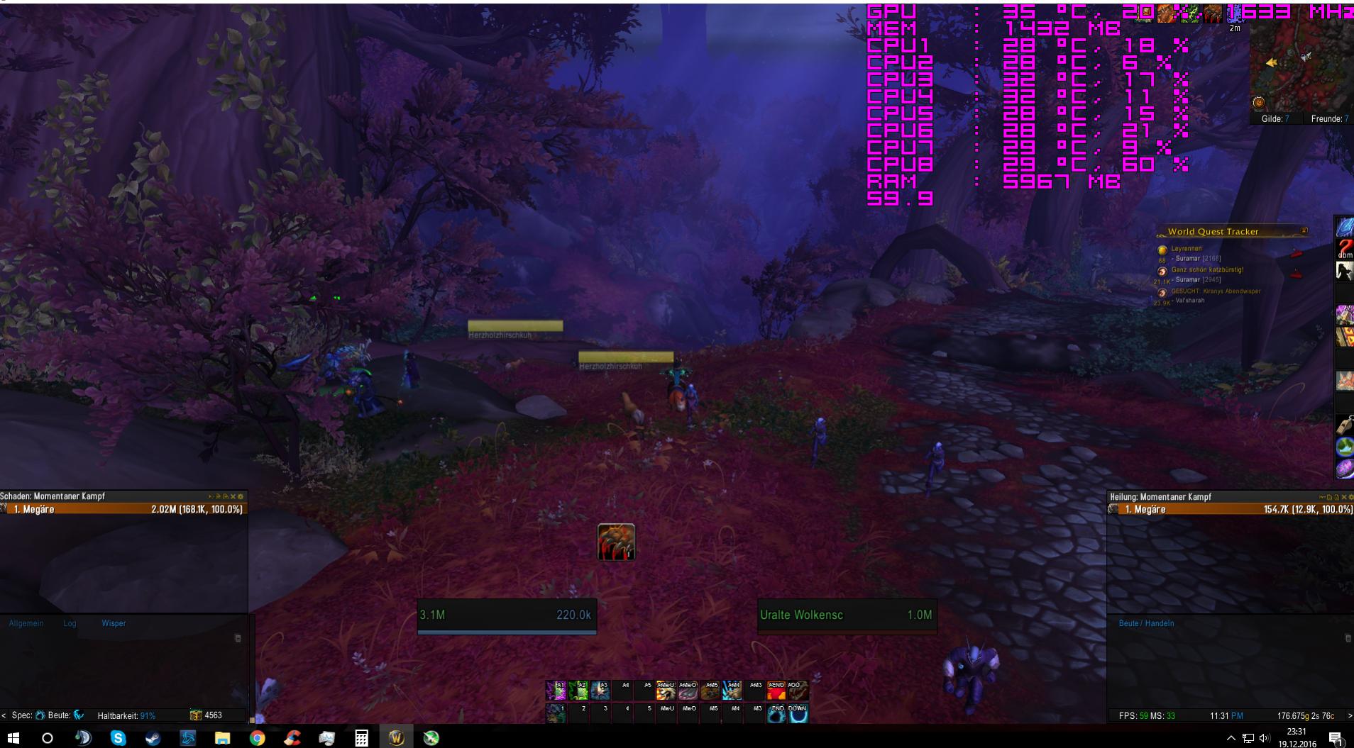 der Titel sagt schon aus was mein Problem ist. Und zwar kriege ich massive Drops in überfarmten Weltquests Gebieten oder auch mal im Raid. Ich spiele mit mit meiner gtx 970 maxed out und bin eigentlich auch der Meinung, dass das konstant funktionieren sollte. Wenn es flüßig läuft habe ich 80-90 Fps und drops auf 50-40-30 manchmal noch lower bis 25 so etwa.