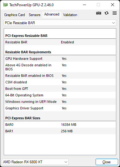 Habs im Bios erstmal freigeschalten und bei Amd Aktiviert funzt. Fehlt nur noch die GPU Beschleunigung unter Windows 11arvan schrieb:GPU-Z listet alle Voraussetzungen für AMD SAM auf unter Advance und ob sie erfüllt sind.