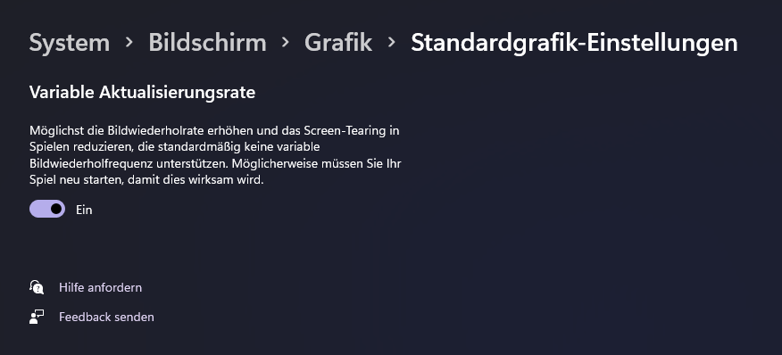 Na ja das ist irgend wie komisch, das hier:arvan schrieb:Ja, ist im Treiber für Windows 11 derzeit nicht freigegeben, daher ist die Option in Windows auch nicht vorhanden. Du kannst es schlicht nicht einschalten.