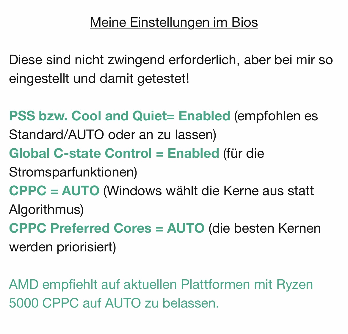 -> ist ein Powerplan für deine CPU, damit sie korrekt und sinnvoll taktet (und nicht wild umher), bei gleichzeitiger Stromwattersparnis. Etwas Leistung gewinnst du dadurch auch in Kombination mit PBO + deine CPU sollte etwas kühler sein als die 85 Grad aus Deinem Anfangspost. Gruß an @Pizza!