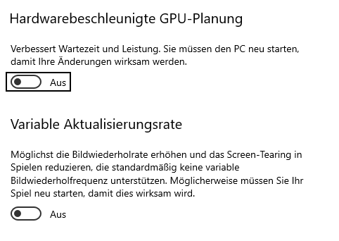 Bei mir ist nur die untere Einstellung vorhanden.Stormfirebird schrieb:So sieht das in Win 10 aus. Oben HAGS unten Adaptive Sync.