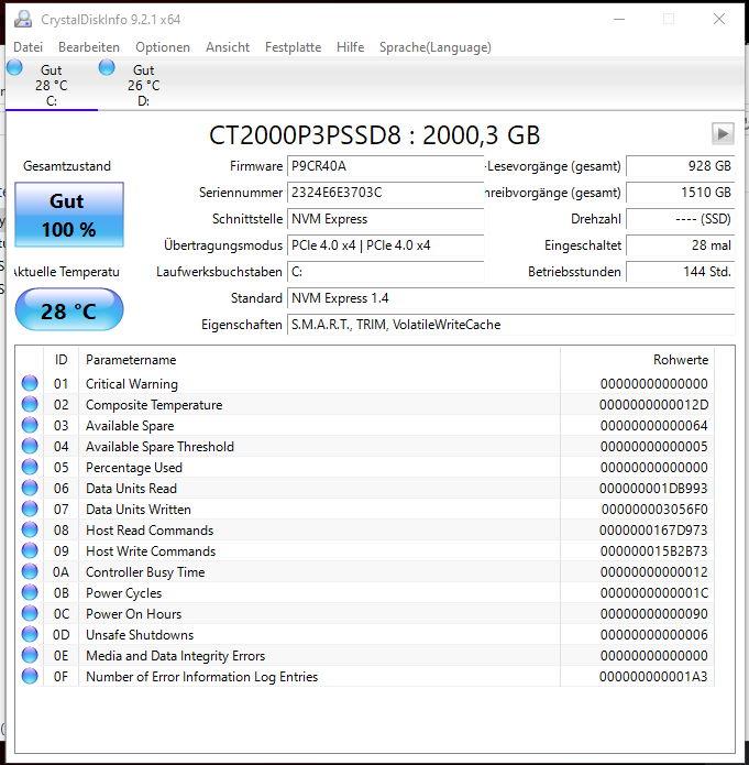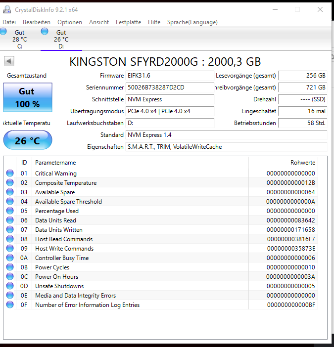 - HDD / SSD: … 2TB Crucial plus 3 und 2TB Kingston Renegade
