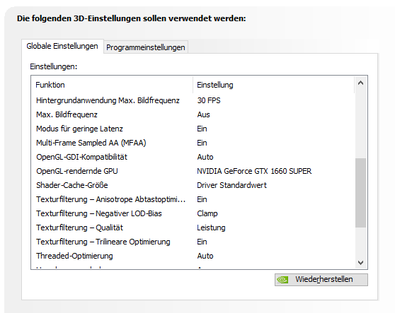 Ich habe bereits in der Nvidia Systemsteuerung alles rum geschraubt was geht (mit Foren,Nvidia,Youtube Vorlagen).