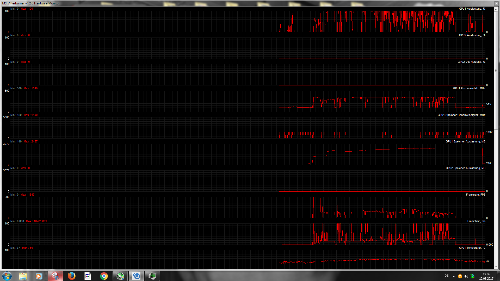 zuerst einmal unten sind Bilder während dem Spielen mit MSI AFTERBURNER aufgezeichnet.