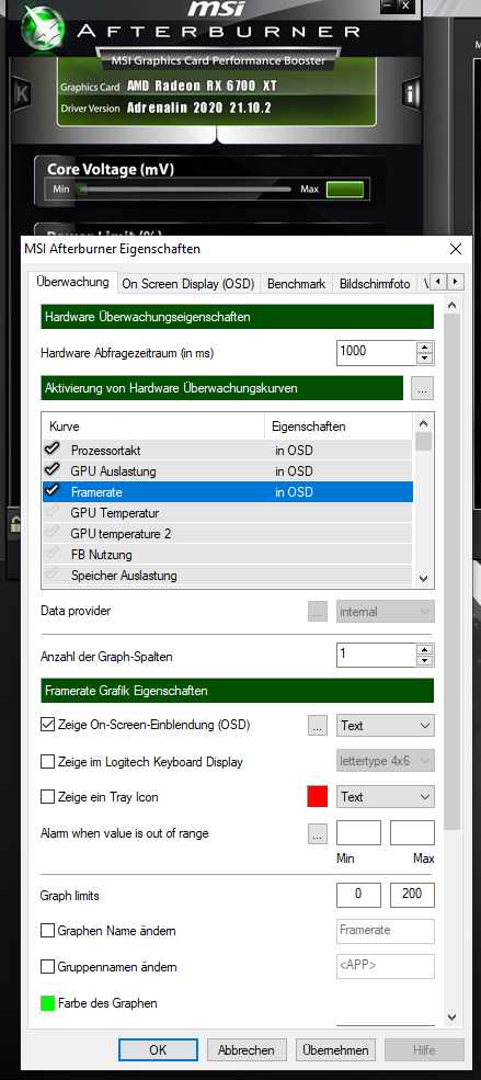 Okay also einfach Haken bei GPU Auslastung und bei Prozessortakt, Framerate und bei den anderen Sachen auchHisN schrieb:Das ist nur weil ich damals zwei Grafikkarten im Rechner hatte.