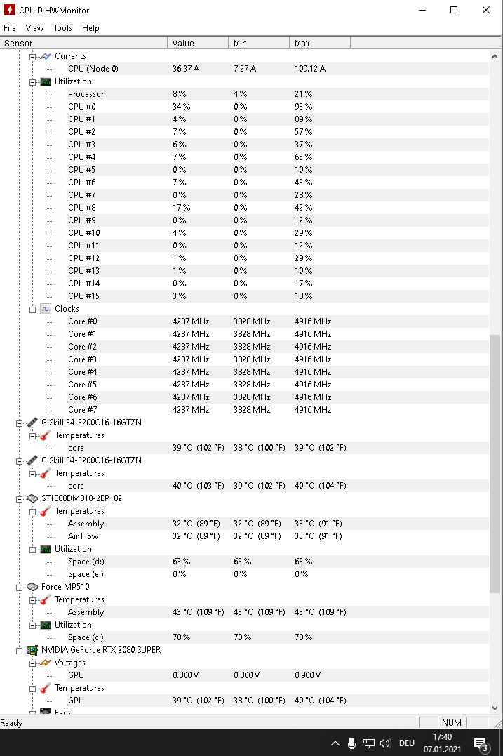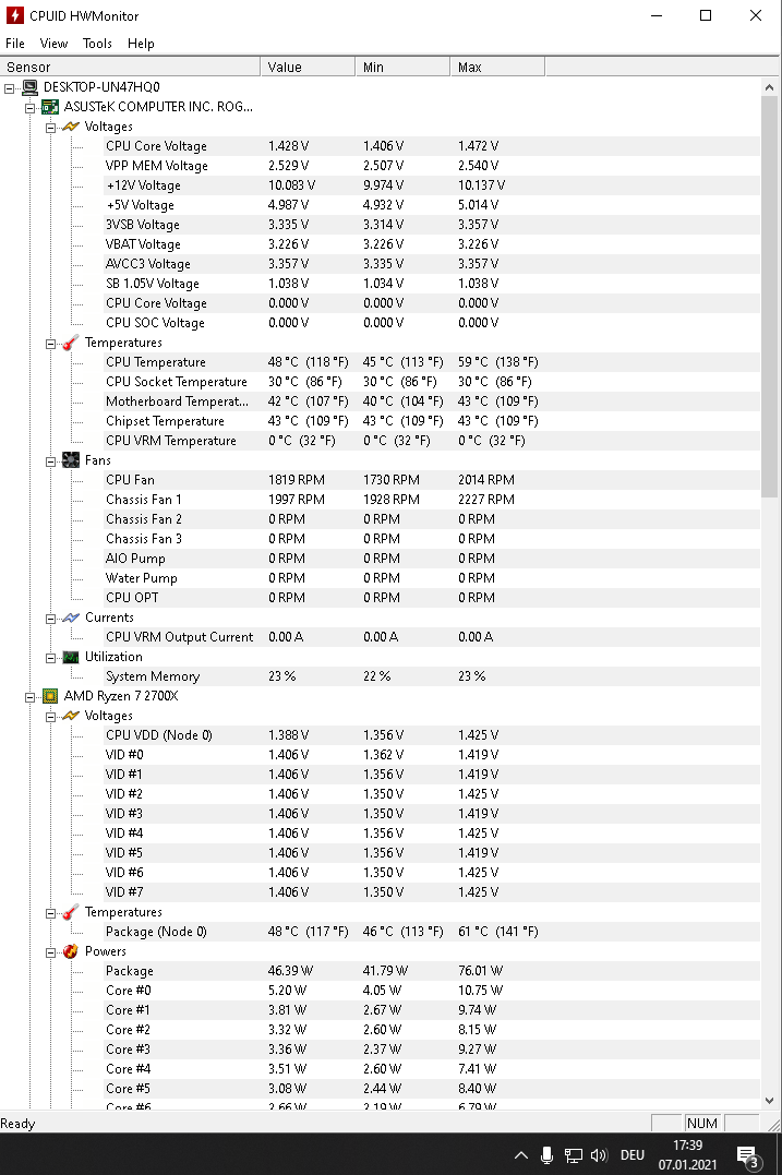- Prozessor: AMD Ryzen 7 2700x 8x 3.7GHZ auf 4250mhz Overclocked