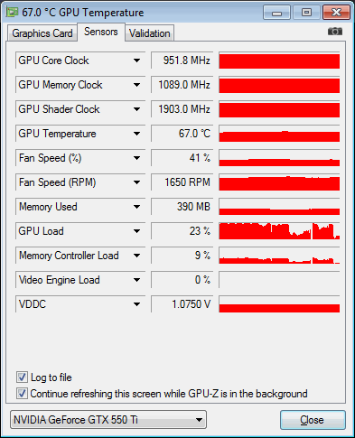Problem liegt anscheinend nicht bei der Grafikkarte. Würde jetzt auch die CPU mal überwachen, du könntest allerdings jetzt schon mal schauen ob du im Taskmanager einen Prozess findest der CPU Leistung benötigt. Wäre ja sehr seltsam würde dies nur beim Spielen passieren, womöglich merkst du es unter Windows nur nicht.
