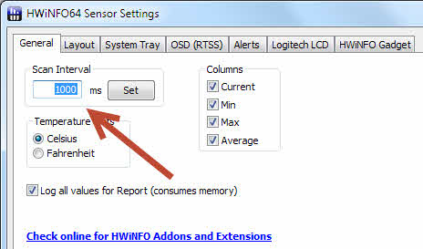 Unter dem "General" Tab kannst du jetzt das Logging-Interval einstellen, würde 1000ms (also 1 Sekunde) empfehlen: