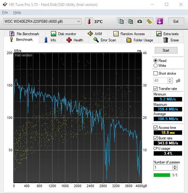 Was mir auch aufgefallen ist, ist das ich wenn ich Programme und ähnliches öffne ich eine sehr hohe Auslastung habe. z.b wenn ich Chrome öffne steigt die Festplatten Auslastung auf 85-100%. Ich habe mal mit HD Tuner einen Benchmark der Festplatte gemacht und mit CrystalDiskInfo die Smart Werte aus gelessen.