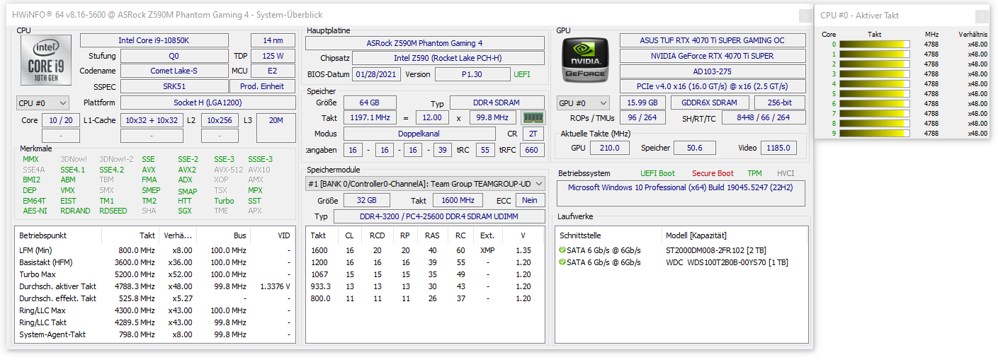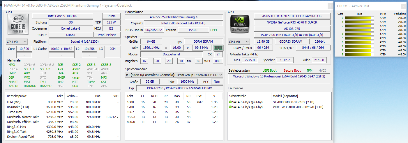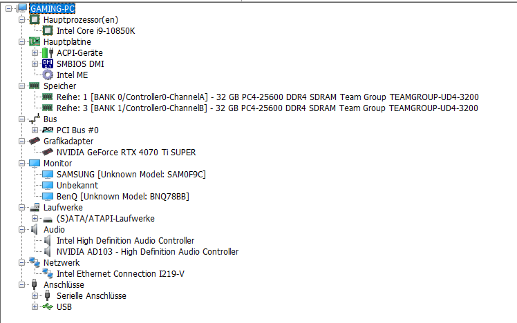Ich habe den PC vor 5 Wochen aufgerüstet. Netzteil vorher 750 Watt, jetzt 850 Watt, vorher 32 GB RAM, jetzt 64 GB RAM und vorher GK GeForce RTX 3070, 8GB, jetzt GeForce RTX 4070 Ti SUPER, 16 GB OC.