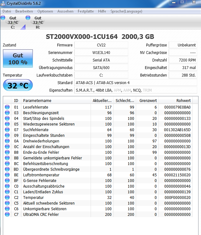 Festpalle laut dem Programm CrystelDiskInfo im sehr gutem zustand und noch keine 1000 stunden gelaufen