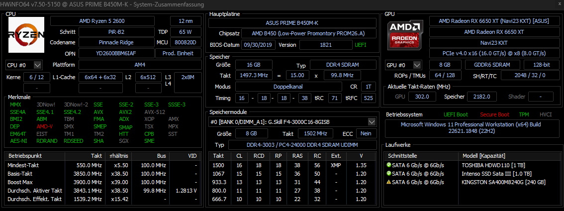 - Arbeitsspeicher (RAM): 16GB 3200mhz