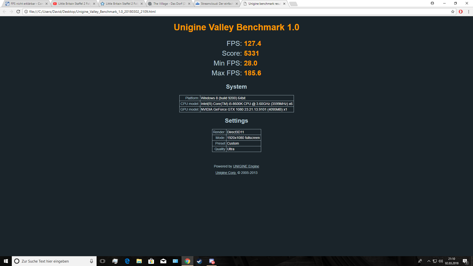 Grafikkarte: nVidia GTX1080 8Gb