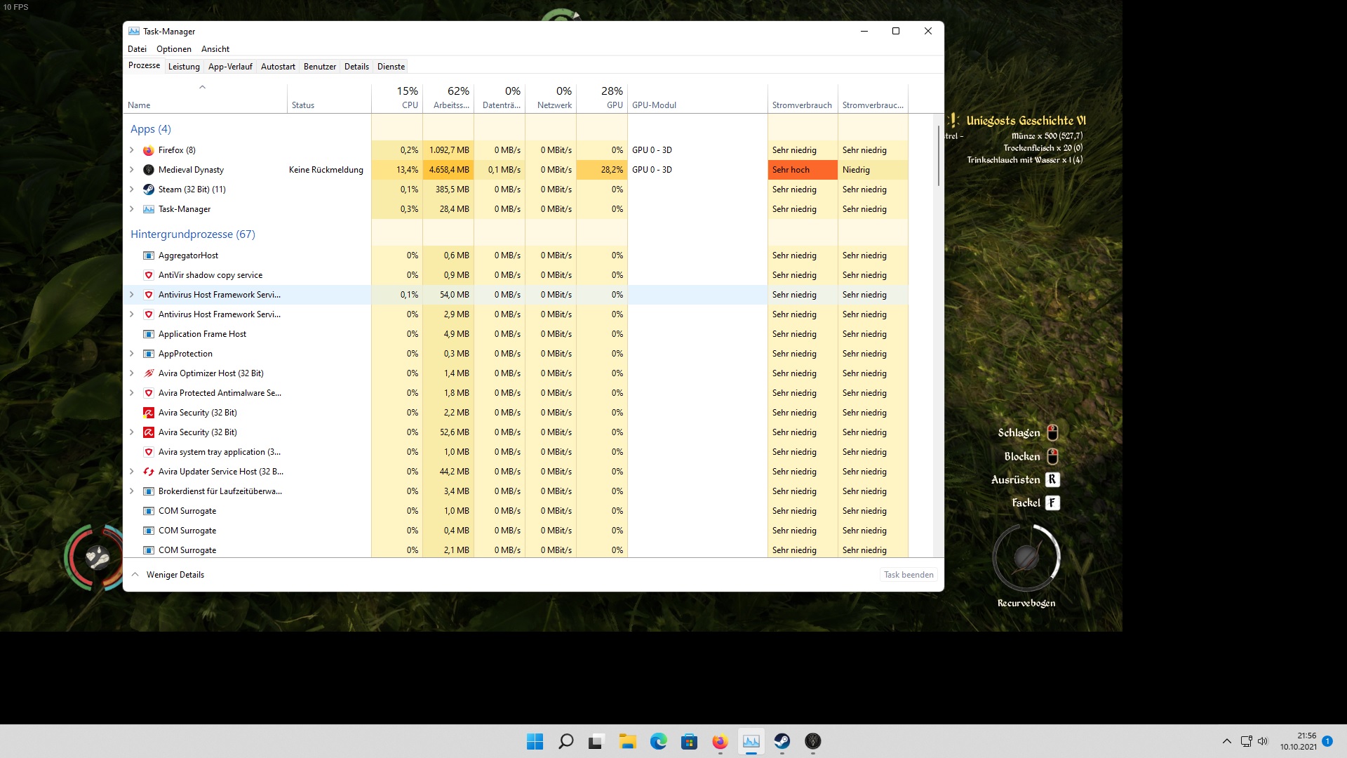MSI Afterburner Überwachungstool ausgeführt (siehe Screenshot, gemacht während dem Spiel Medieval Dynastys).