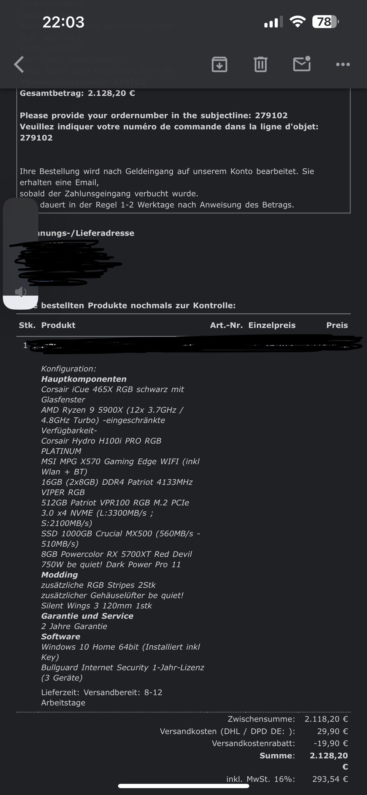 - Grafikkarte: 8Gb Powercolor RX 5700XT