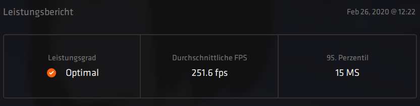 Da steht 60fps aber das stimmt nicht, ich spiele mit meistens 230fps, manchmal kurz 240, aber manchmal auch 180fps. Die Frames schwanken sehr stark alles von 230-180fps ist dabei.