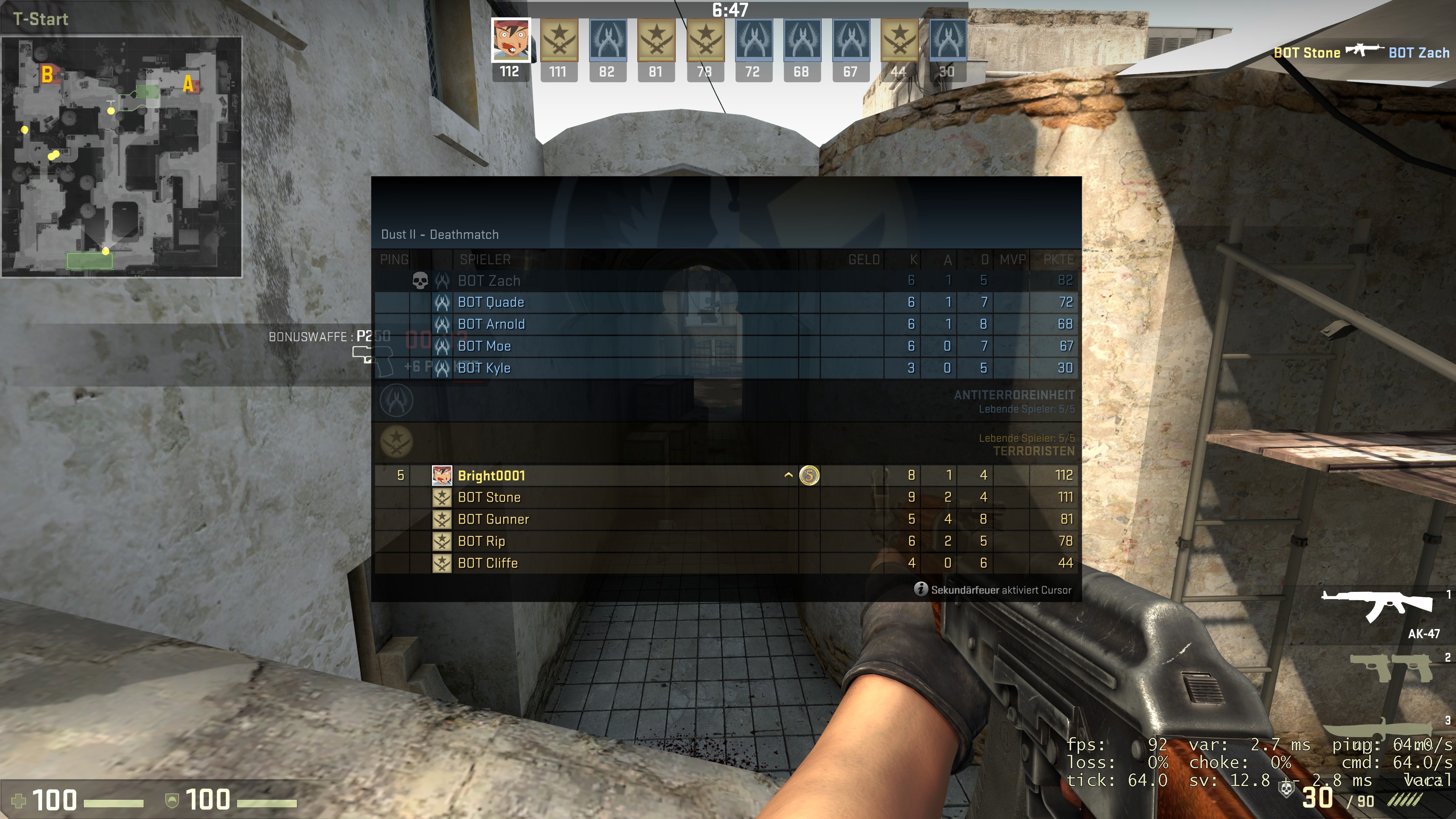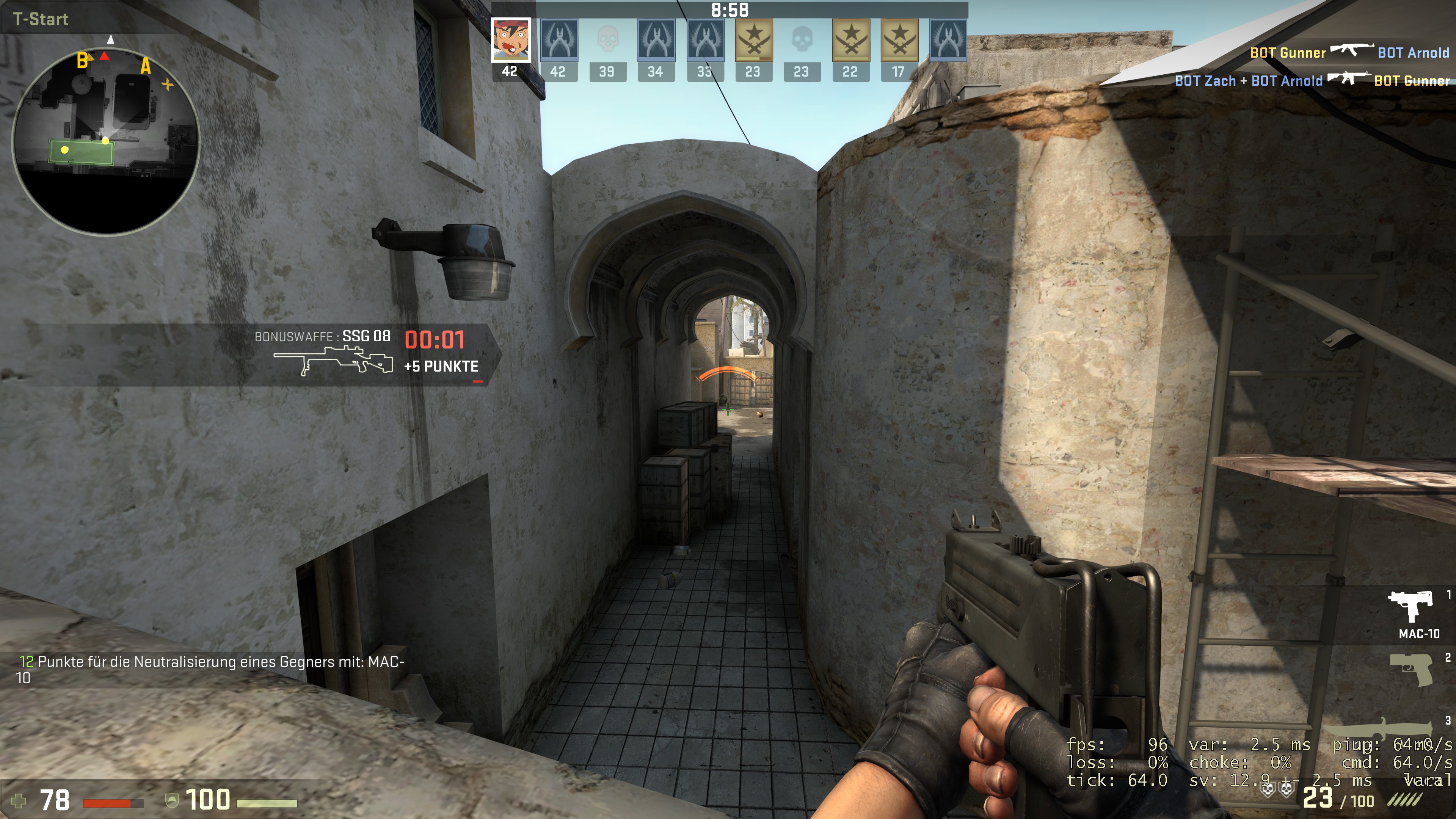 habe leider Probleme in CS:GO. Wenn ich in einem Botspiel bin und 5v5 spielen und ich in Mitte auf Dust2 gucke, gehen meine FPS auf 70-90 fps runter und es ruckelt einfach nur noch. Spiele auf 4:3 und einfach Auflösung von 1152x864.