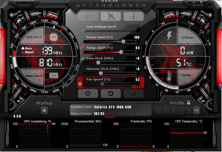deine 1060 sollte einen max takt von 1506 Mhz haben und im boost noch ne schippe drauf.