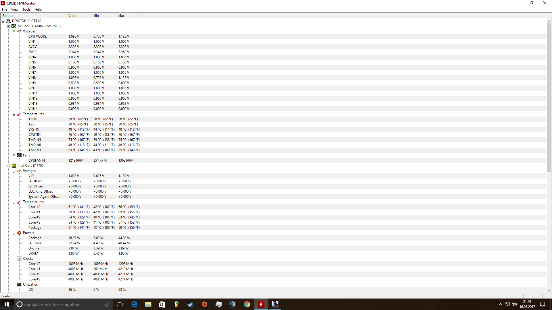 lass dieses programm mal laufen, wärend du zockst. das zeigt dir alle auslastungen mit minimal und maximal an.