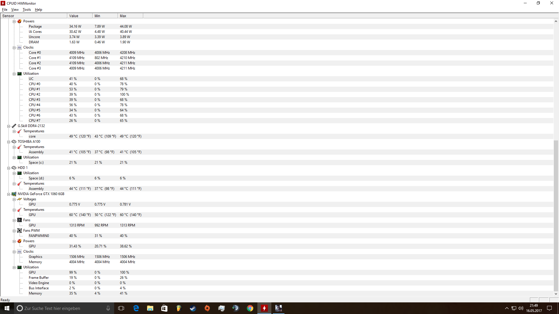 AnkH schrieb:... und dem Umstand, dass HWiNFO bei min, max. und aktuellem Wert jeweils die identische Zahl nennt.