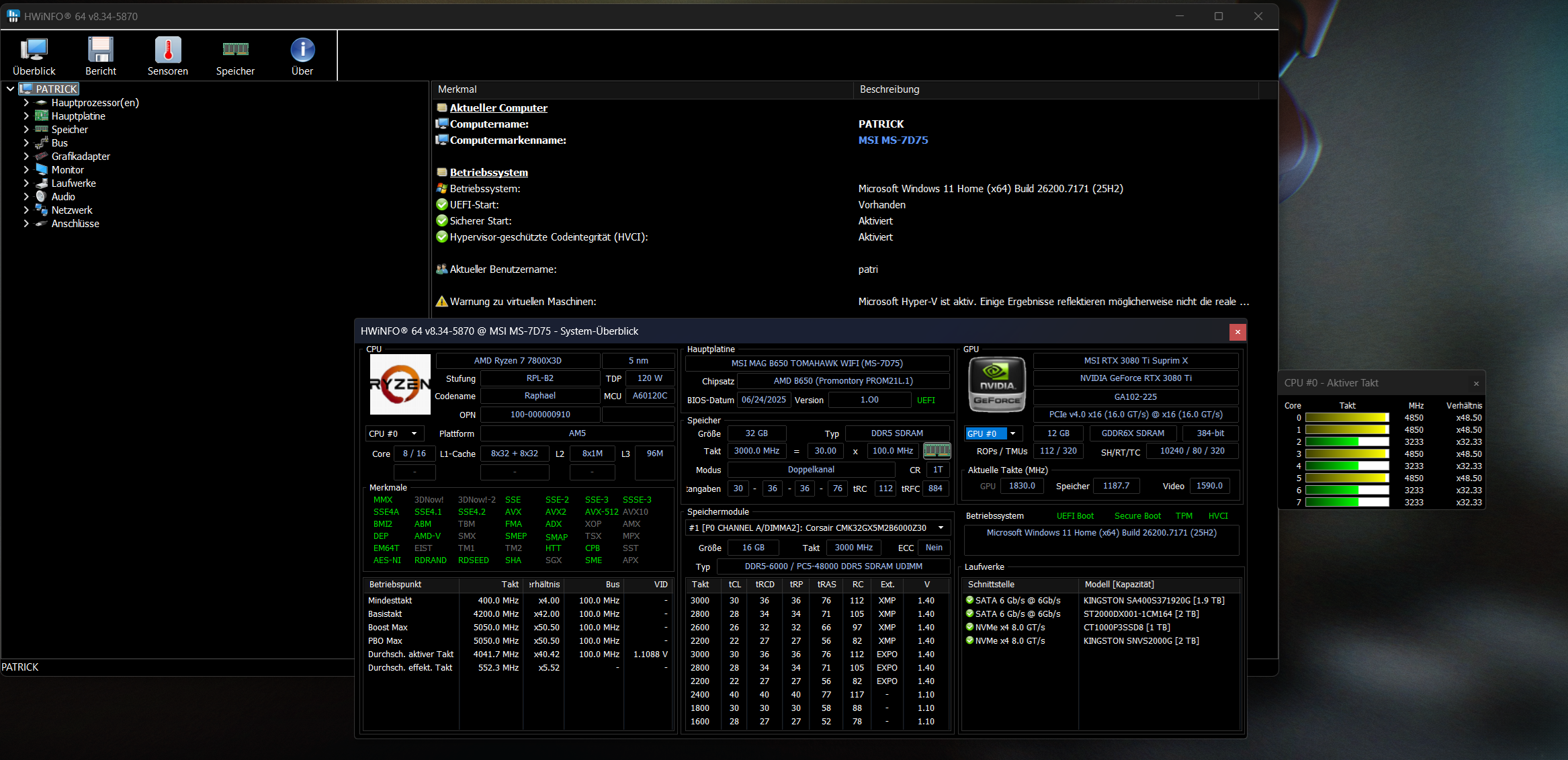 - Prozessor (CPU): AMD 7800x3d