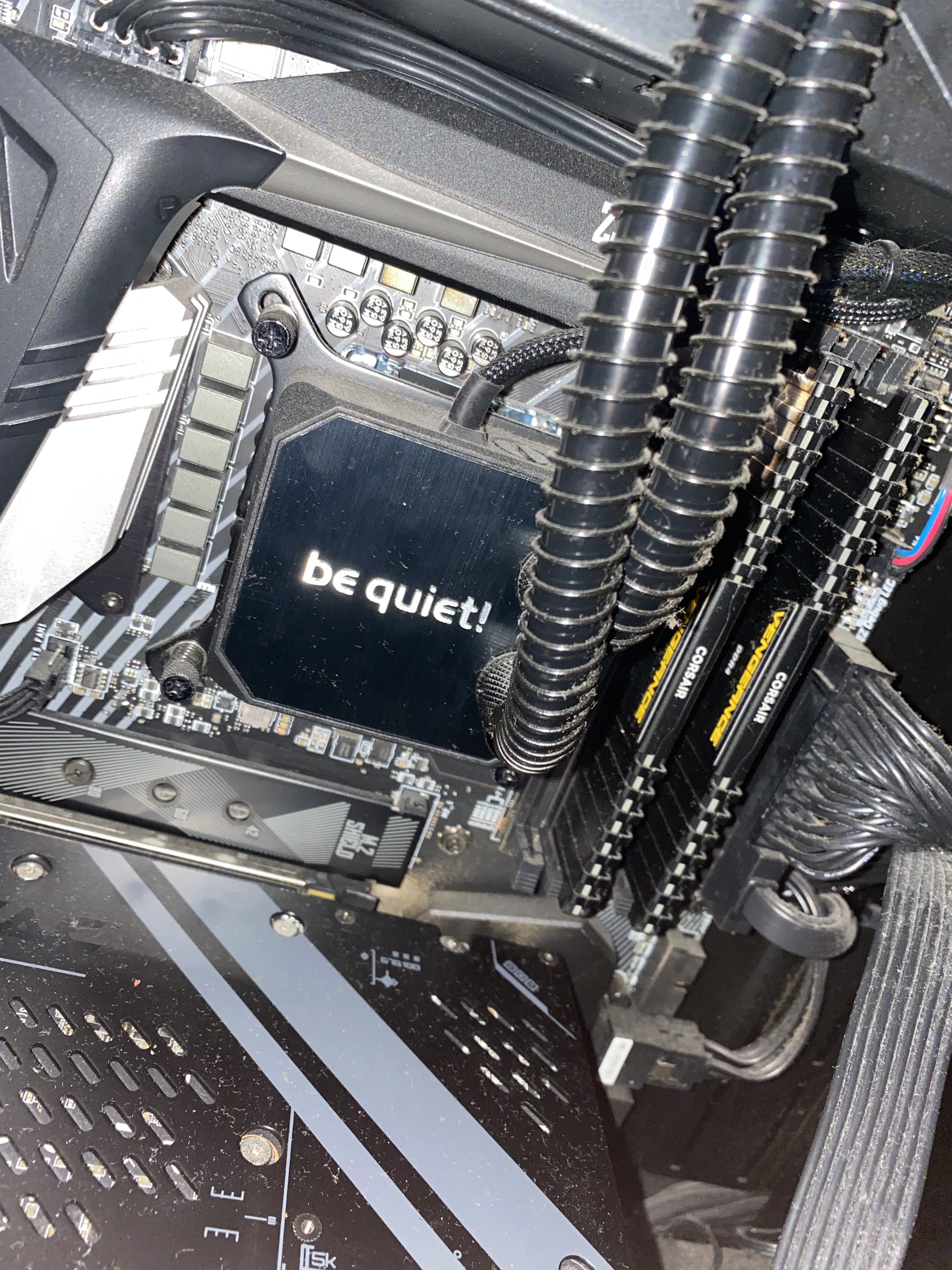 Das ist der kühler be quiet silent loop 120 mm und ich glaub das ist nun das problem der lüfter läuft auf hochtouren und das bauteil auf den foto ist brennend heiß