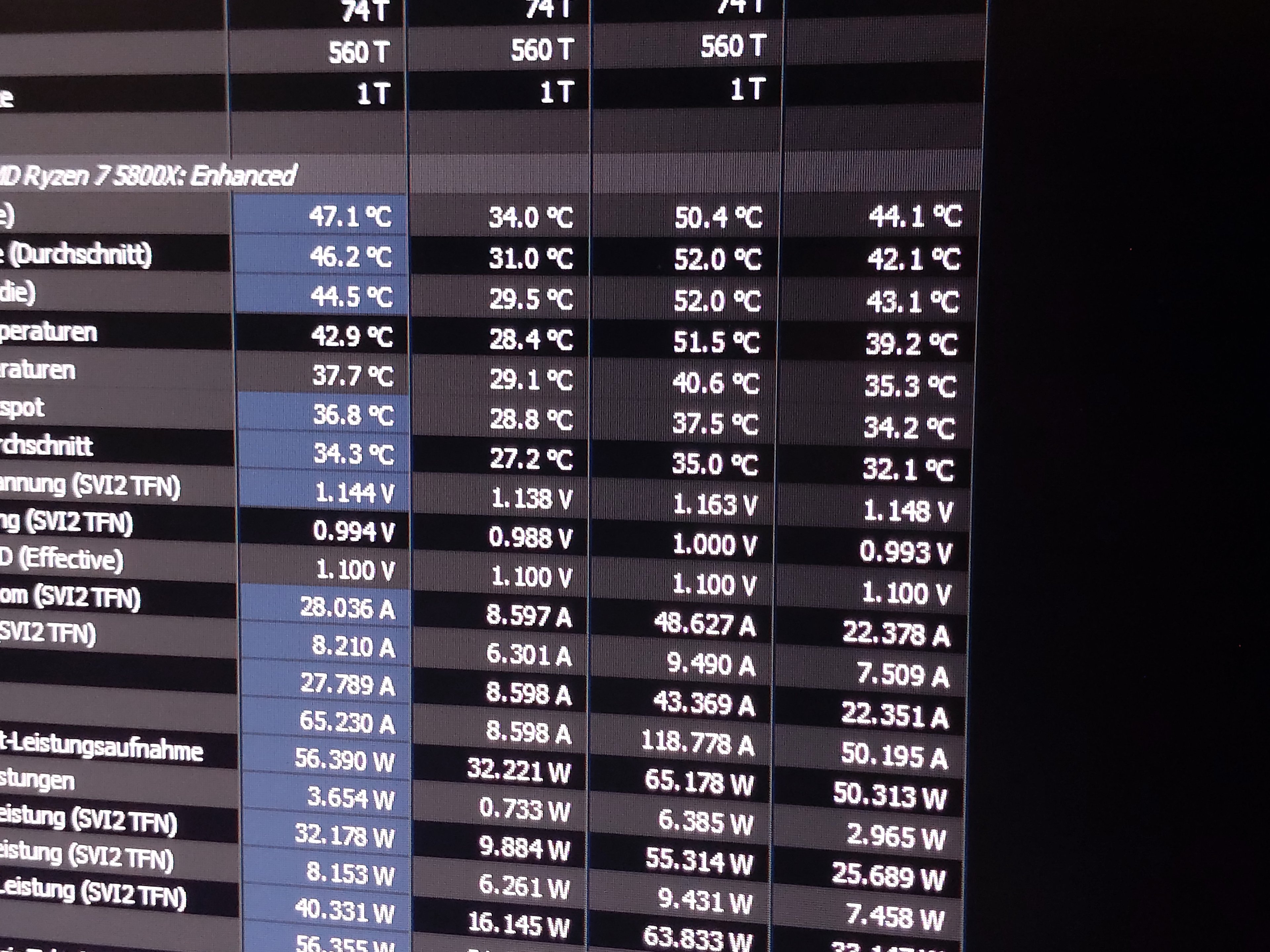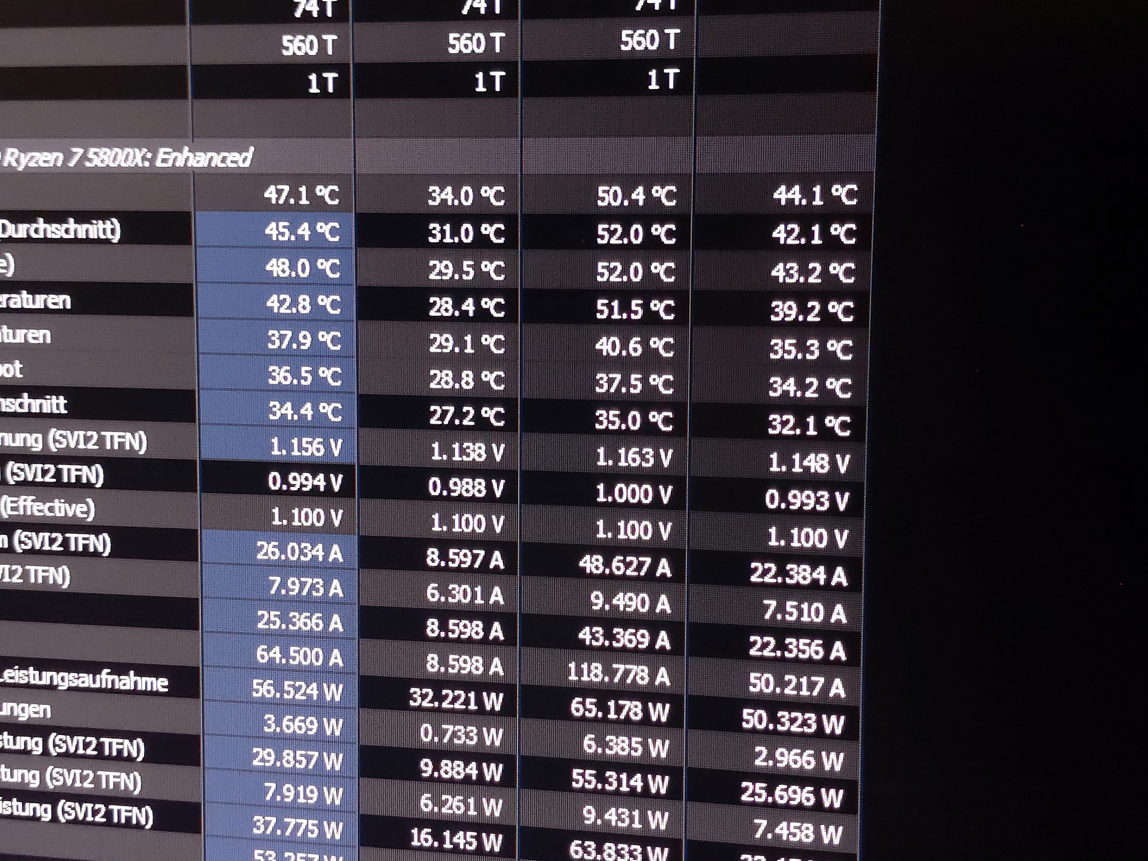 uns wird es leichter fallen HWiNFO auszulesen mit all den Werten (ich nutze das Programm privat auf 2 verschiedenen PCs, 1x custom wakü und 1x aio auf CPU + GPU mit luft)