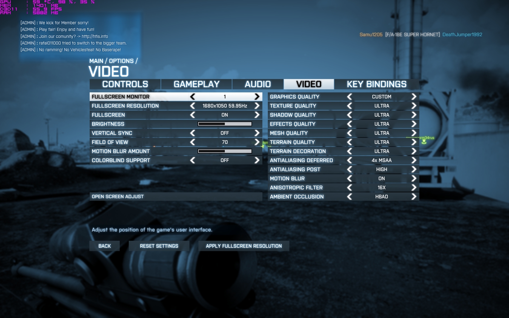 Hier kurz ein paar Screenshots von mir. Auflösung wie die vom TE, Settings sogar maxed Out und da kommen bei mir immer noch über 50FPS an. Selbstredend ist die CPU dabei über 90%.