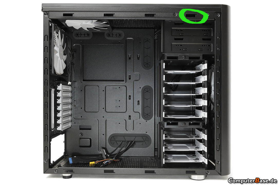 Des weiteren lag die Front nie bündig am Chassis auf, was sich in hässlichen Spalten äußert. Das dritte Exemplar war total im Eimer: Verbogenes Meshgitter in der Front, im Deckel gelöste Laufwerksblenden, schiefes Frontpanel, eingedrückter Power-Taster (wahrscheinlich B-Ware) - aber wenigsten lassen sich die Seitenteile leichter abziehen und wieder montieren, trotzdem verzieht sich das Chassis noch dabei.