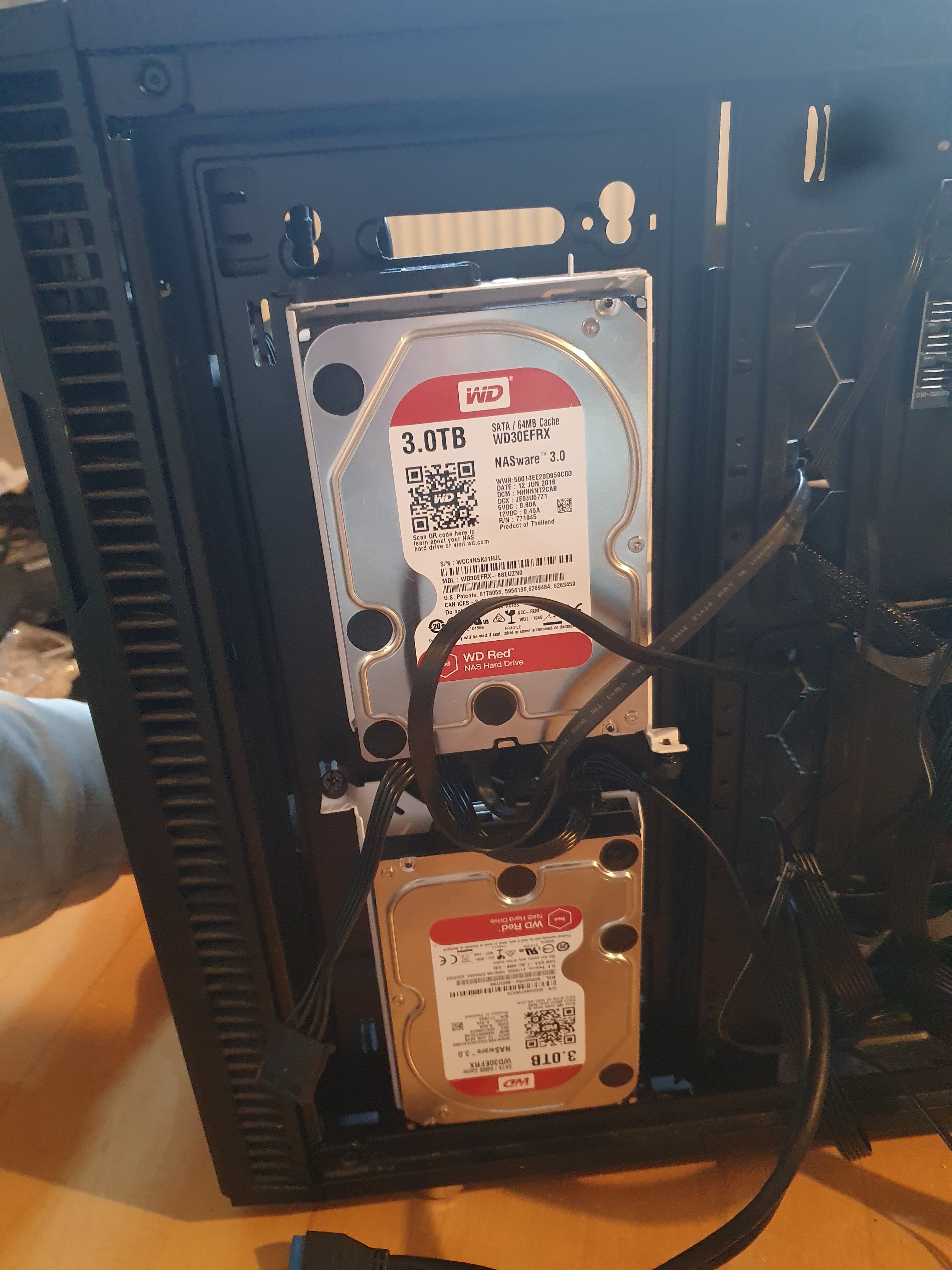 Bezüglich der Position der Festplatten, das war bisher die einzige Möglichkeit die ich in Verbindung mit vorhandenen Halterungen ud Kabeln und meinen Fingern hinbekommen habe