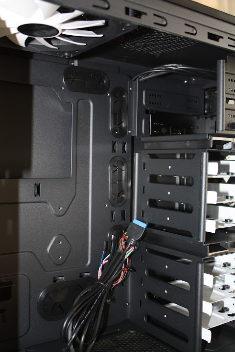 A total of 7(!) fan slots (2x 120mm in front, 2x 120/140mm in top, 1x 120mm in bottom, 1x 120mm in rear,1x 120/140mm in side panel)