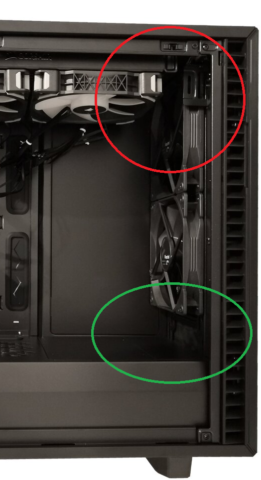Was soll daran "dumm" sein? Das wurde ja schon besprochen, das a) die Lüfter in der Höhe verschiebbar sind und b) der untere Lüfterplatz noch frei ist.