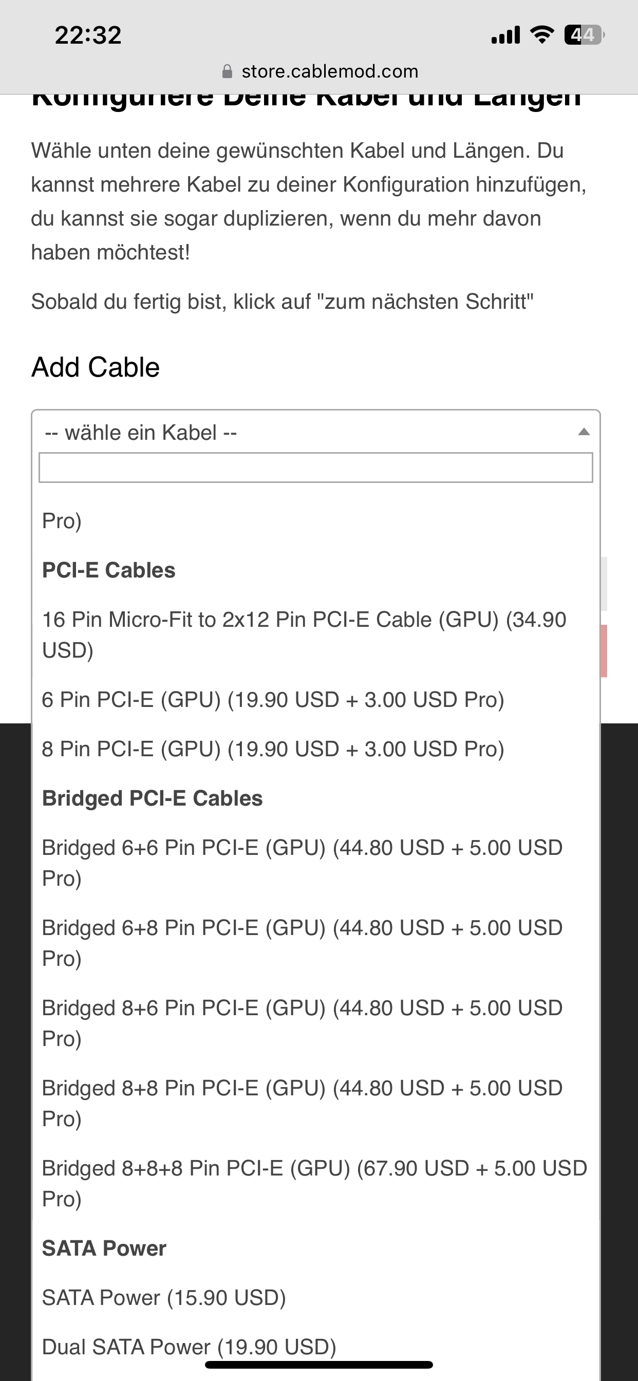 Ich wühle mich bei diesen Cablemod Konfigurator, was muss ich da alles eintippen