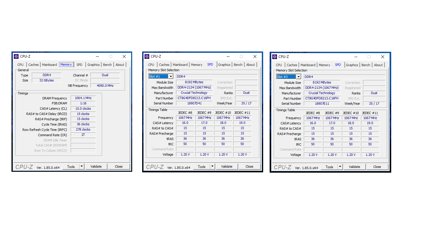 So wie ich das lese und gesehen habe, habe ich 2x 8 GB DDR4 mit 2133 Mhz RAM Riegel verbaut.