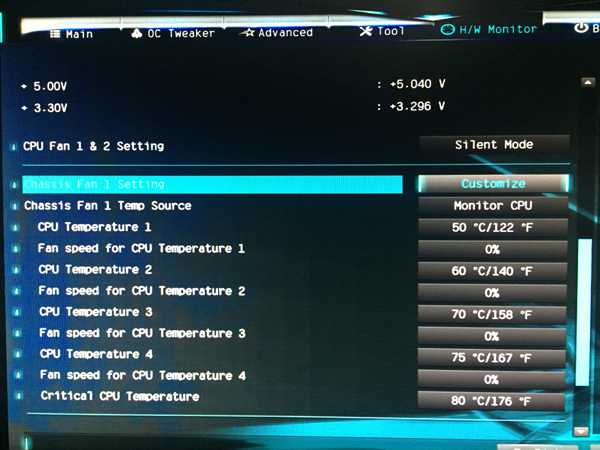 2.) Egal, was ich im BIOS einstelle, Chassis Fan 1 lässt sich nicht steuern und dreht immer auf ca. 1100 RPM. Chassis Fan 1 besitzt auf meinem Board einen 4-Pin-Stecker aber der Lüfter ist ein 3-Pin-Stecker, liegt es daran? Wenn ja, wieso benötigt Fan 1 zum Steuern 4 Pin?