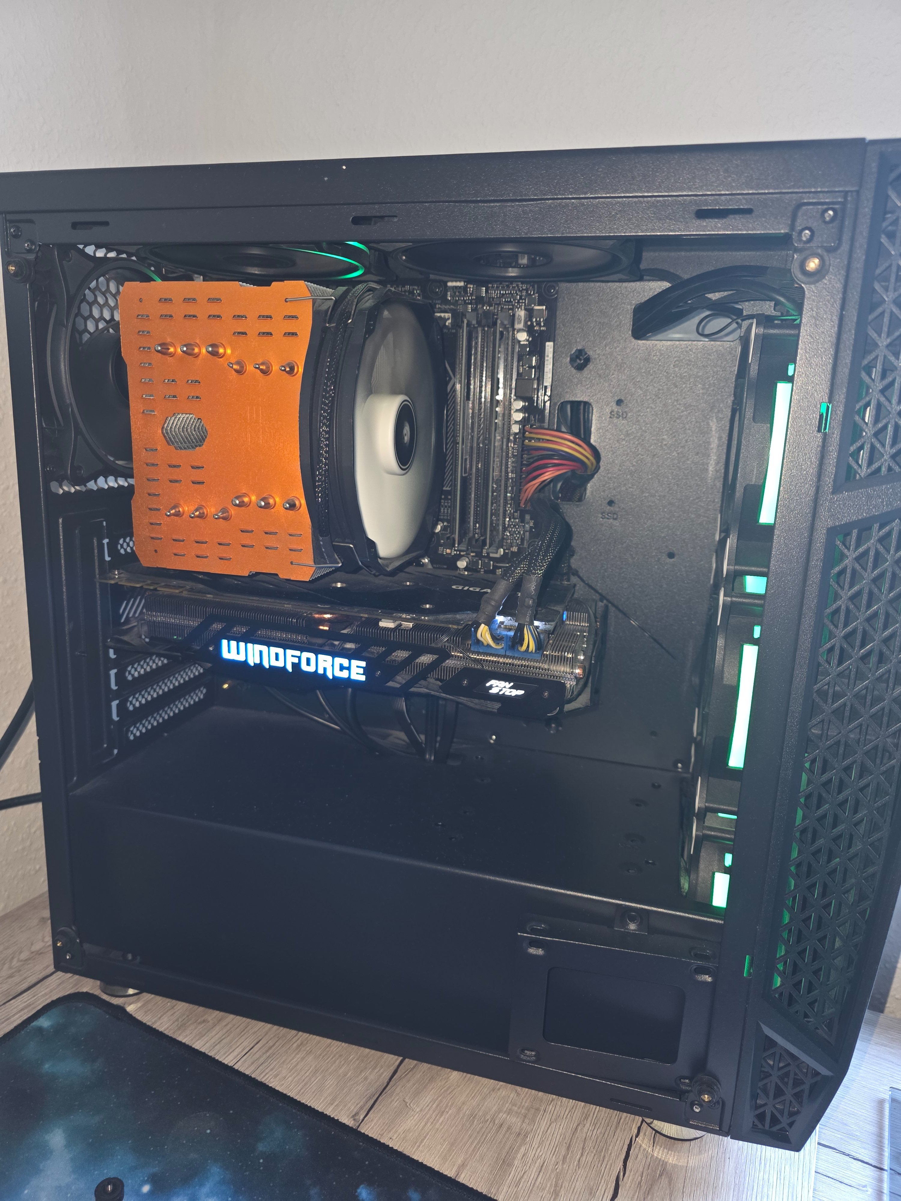 Der Kühler dürfte wohl der https://www.computerbase.de/news/kuehlung/thermalright-aro-m14-macho-amd-ryzen.63160/ sein mit dem kann man gut arbeiten, das Gehäuse sieht mir nach einem AeroCool Klaw aus, sagen wir es so, es hat zumindest einigermaßen Platz.