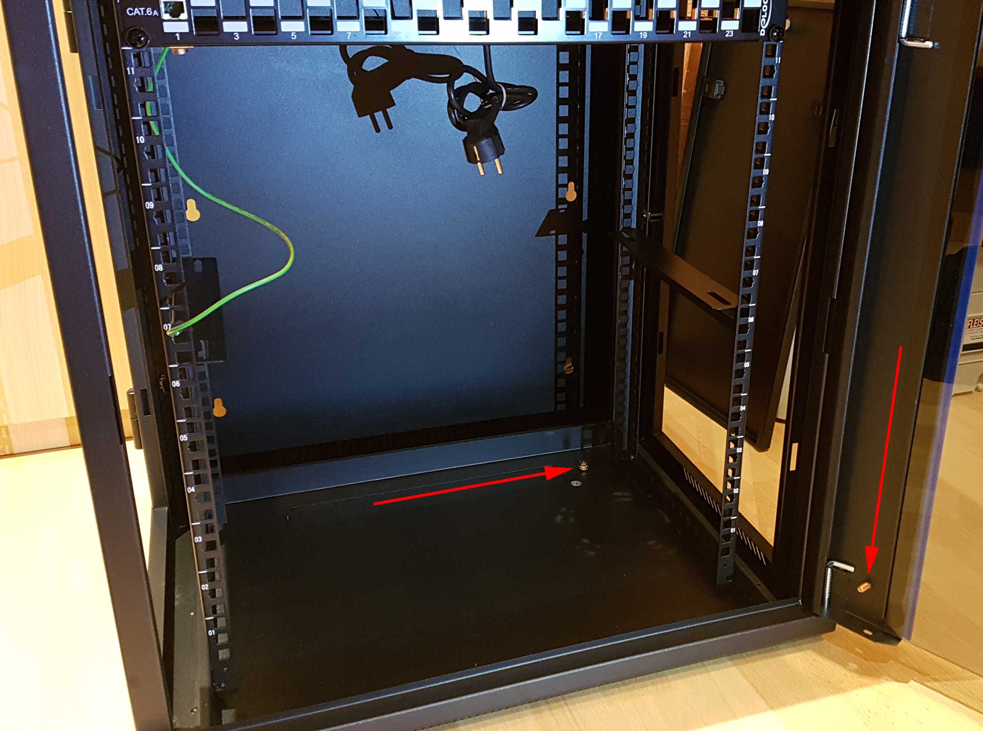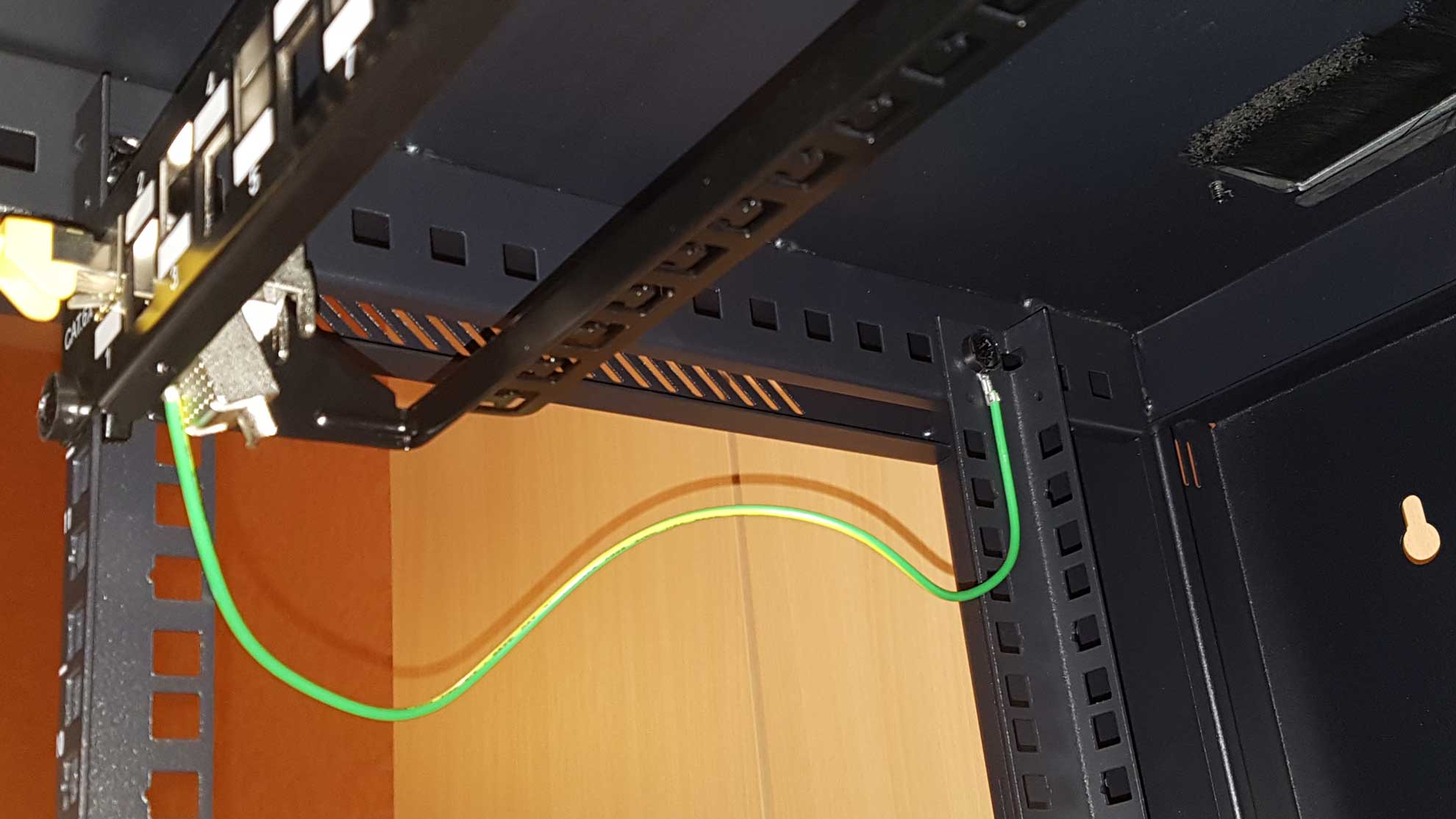 Um nun wieder zum wichtigen Punkt zu kommen, also eine 10qmm Leitung könnte ich an der Schraube auf dem Boden befestigen, aber wo klemme ich nun die Erdleitung für das Patchfeld dran? Die Tür hat ebenfalls nur eine Schraube und sollte ja von der Logik her, noch einen Gegenpunkt haben. Fehlen da etwa Anschlüsse?