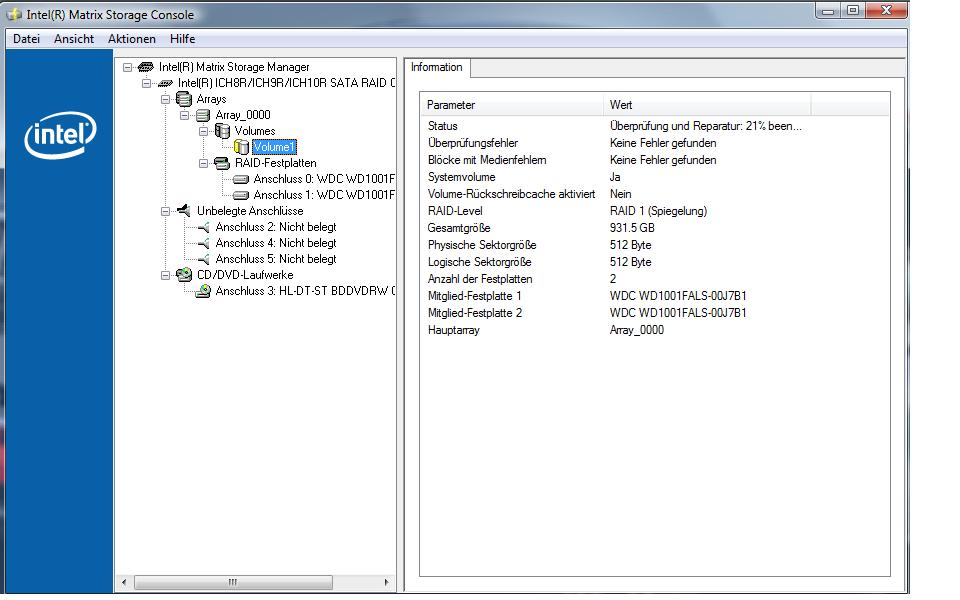 Hab auf meinem Asus P6T Deluxe V2 an der Southbridge Intel ICH10R ein RAID1 mit 2 WD Caviar Black 1TB hängen.