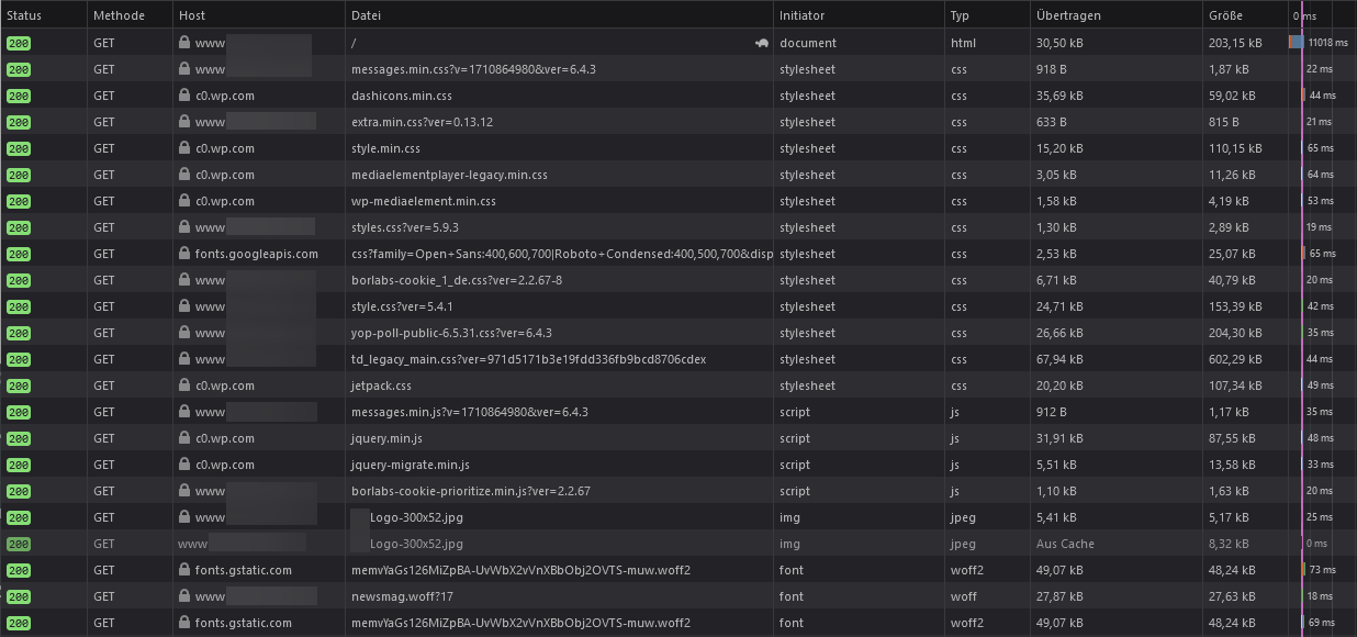 Bei einer meiner Webseiten, habe ich das Problem dass beim aufrufen der Webseite im Dev Tool von Firefox oder auch Chrome, eine Wartezeit von knapp 10 Sekunden angezeigt wird.