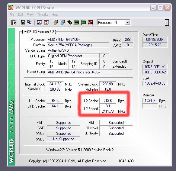 Also besagte CPU habe ich bestellt und diese werkelt nun bei mir. Jetzt ist mir aber bei WCPUID aufgefallen, dass der L2 Cache nur 512KB groß ist (siehe Attachement). Sollte dieser beim Clawhammer nicht 1MB groß sein? Vielleicht wurd ich ja übers Ohr gehauen? Hat mich sowieso gewundert warum die CPU Boxed nur 290€ gekostet hat.