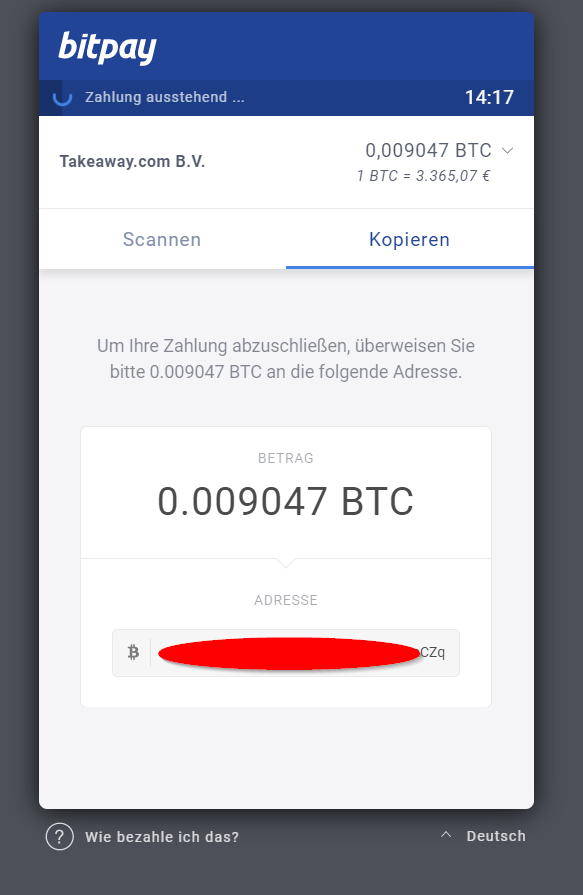 Um aber auf deine eigentliche Frage zu kommen - Du kannst auch über Bitcoin.de die Bitcoins überweisen, du gehst einfach auf Auszahlung und gibts die Adresse ein, an die du Bitcoins überweisen willst - dafür brauchst du kein Bitpay.