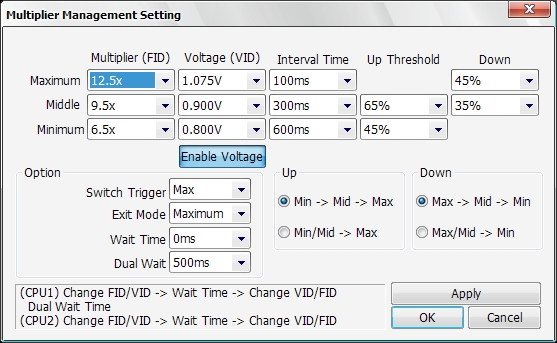 Hallo, hab wieder eine Frage, ich benutze seit langen das Programm CrystalCPUID würde gerne wissen wie ich die Werte am besten einstellen soll für "Up Threshold" sowie "Down"