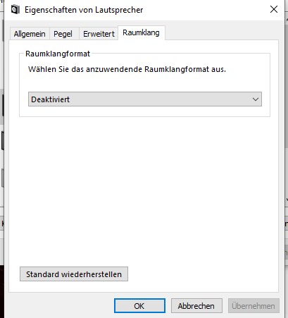Kollege hat in den Sound Einstellungen von Windows Raumklang aktiviert und meinte dies muss man.
