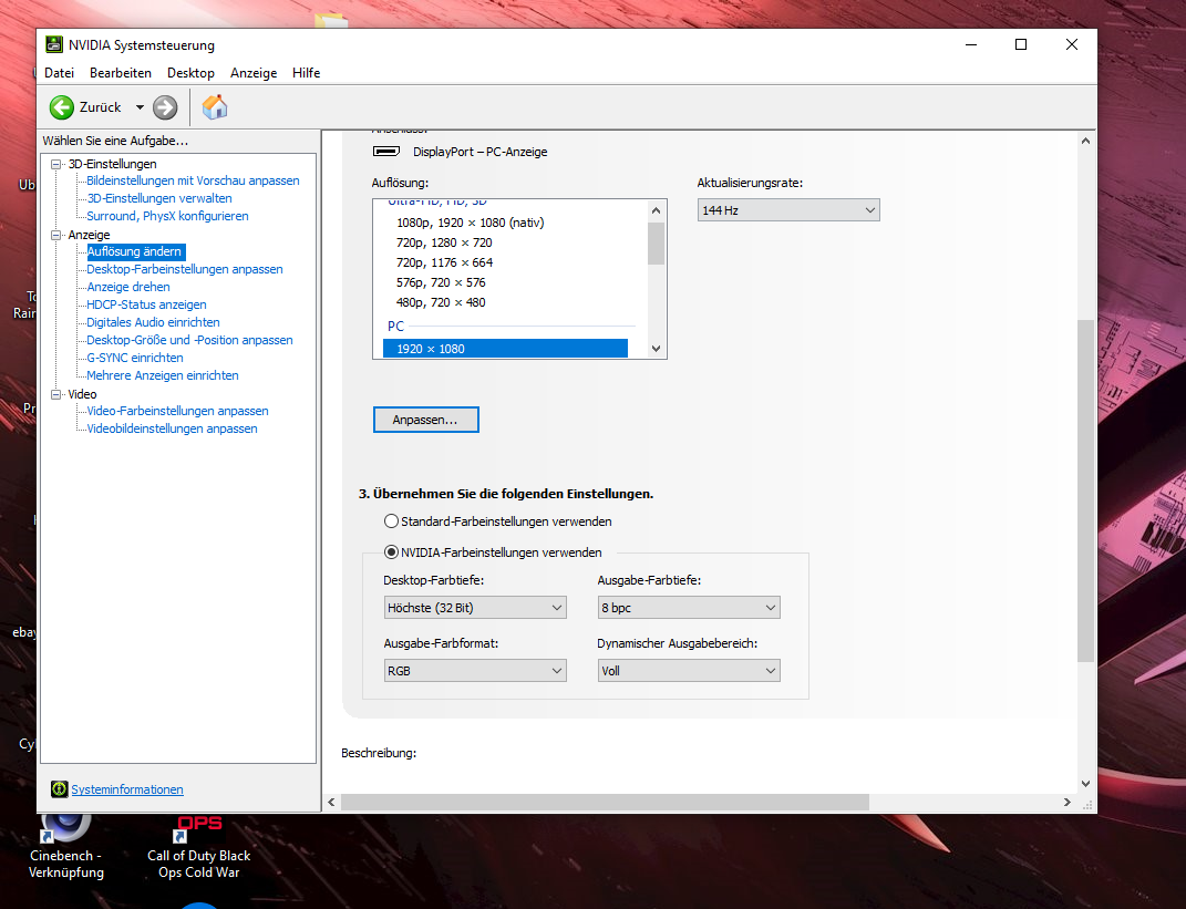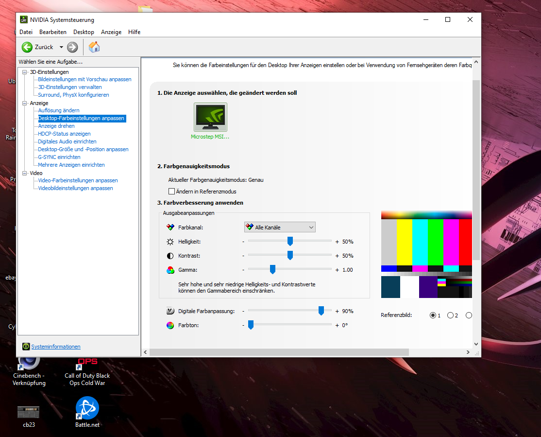 Unter dem Punkt Anzeige gibt es Standard Farbeinstellungen oder Nvdiea verwenden.