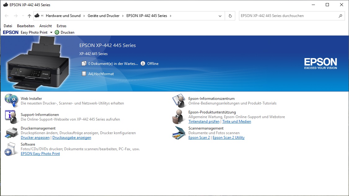 Wir haben auch mehrere Epson Drucker in der Familie und auf Arbeit. Problemlos läuft davon keiner, der XP 442 hat nach 5 Jahren dann auch angezeigt, dass das Tintenkissen demnächst voll ist. Kostet dann ein 10er und Rücksetzen ist nicht ganz einfach. Gebraucht bekommt man die Dinger aber auf Kleinanzeigen hinterhergeworfen.