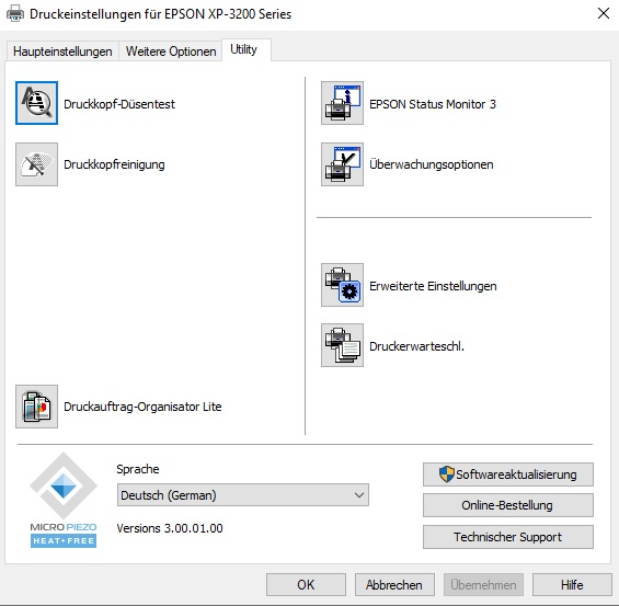 Es gab da noch den Epson Status Monitor, den hab ich aber gleich wieder entfernt wegen Nerverei oder so.