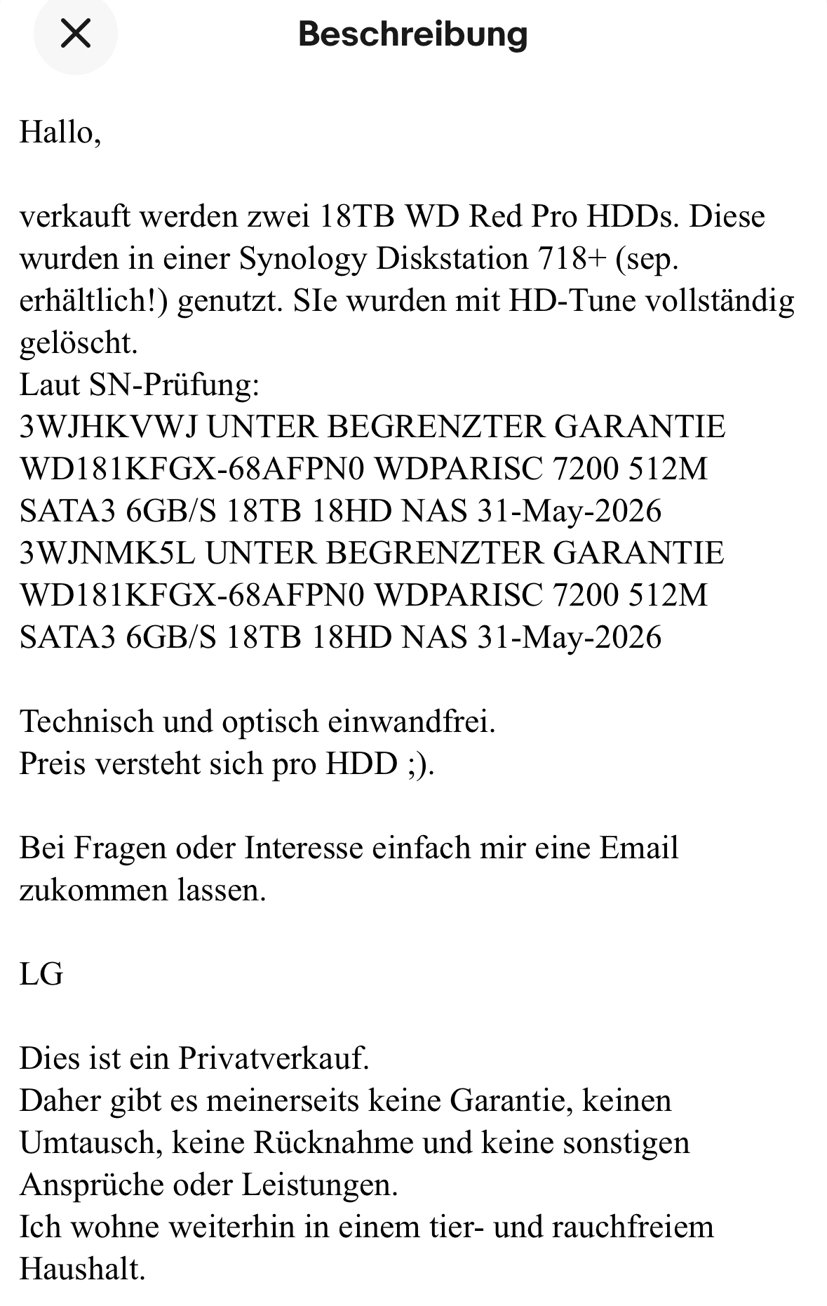 Moral der Geschichte: Wenn keiner die Beschreibung durchliest, bietet und sich dann wundert … Ist er selber Schuld?