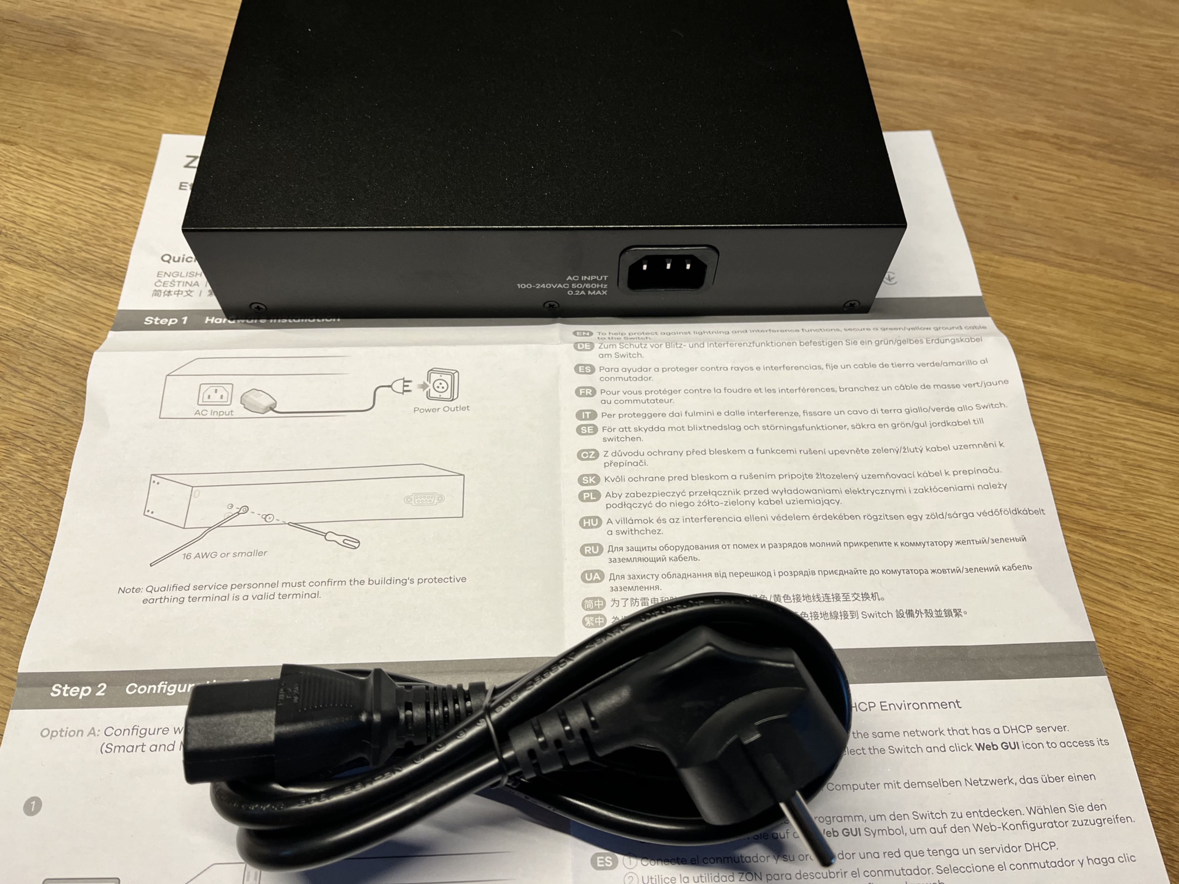 Ich nehm als Switch Das Zyxel GS1100-16. In der Anleitung steht das man zum Schutz vor Blitz- und Interferenzen ein Erdungskabel am Switch befestigen soll. Diese Schraube oder Pin sehe ich aber nicht. Des Weiteren bin ich hier im Forum auf die DIN VDE 0100-410 gestoßen wonach an ein Gerät mit Schutzklasse II kein Schutzleiter angeschlossen werden darf. Ich hab keine Ahnung welche Schutzklasse ich hab und brauche hier Hilfe ob ich am Switch nun was machen muss oder nicht. Ich häng mal noch ein Bild vom Switch dran.