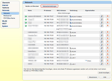 Wenn ich auf Heimnetz gehe in der Fritzbox sieht man ja seine ganzen angemeldeten Geräte. Dort ist z.b Mein Iphone drinnen. Und dann steht ja ip mac adresse usw. Und hinten gibt es einen Punkt nennt sich EIGENSCHAFTEN. Und dort steht manchmal (nicht immer) mein Samsung TV der per Ethernet auch im Netz hängt drinnen mit einem kleinen Blauen halbrunden Kreis davor?????