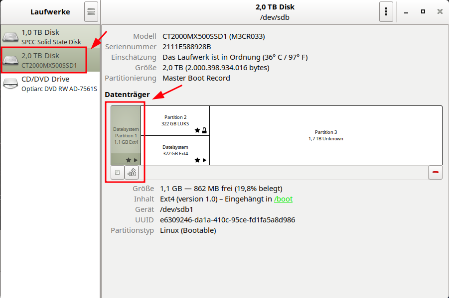 Darauf befindet sich die mit LUKS verschlüsselte Betriebssystempartition.